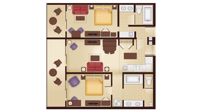 Home » Without Label » Animal Kingdom Lodge 2 Bedroom Villa Floor Plan : Animal Kingdom Villas Kidani Village | DVC Rental Store - This suite has a full kitchen, living and dining area, king bed, two queens, twin sleeper chair, and a sleeper sofa, and can sleep 9 guests.
